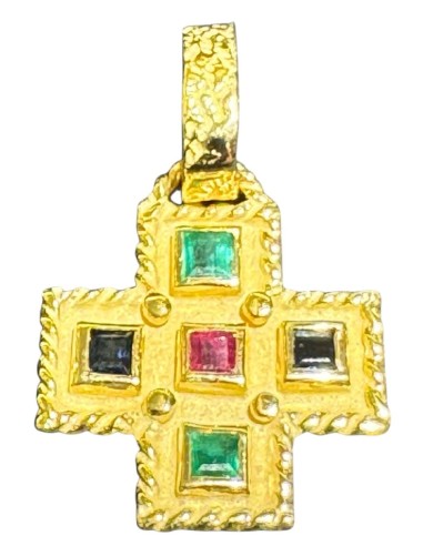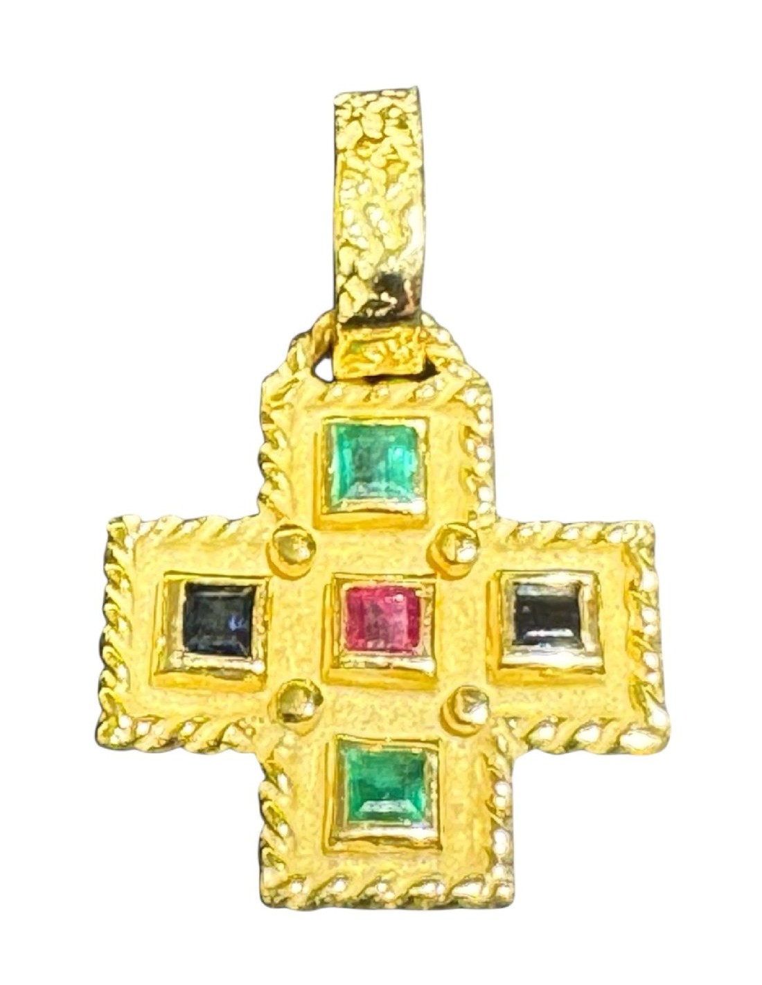 COLGANTE CRUZORO CON ZAFIRO,RUBI Y ESMERALDA