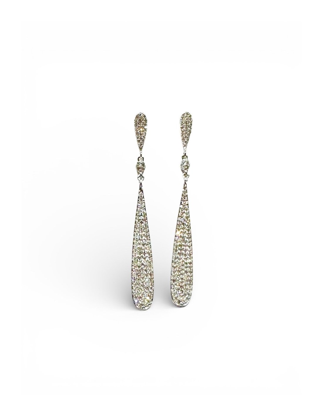 PENDIENTES LARGO ORO BLANCO Y DIAMANTES
