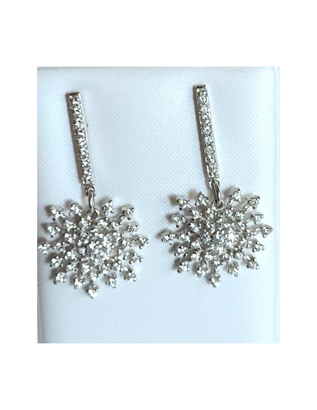 PENDIENTES ORO BLANCO LARGO CON ESTRELLA NIEVE