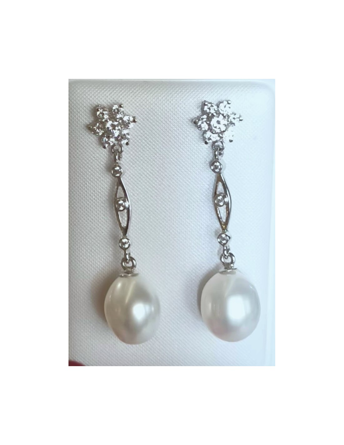 PENDIENTES ORO CON PERLA Y ROSETA CIRCONITA